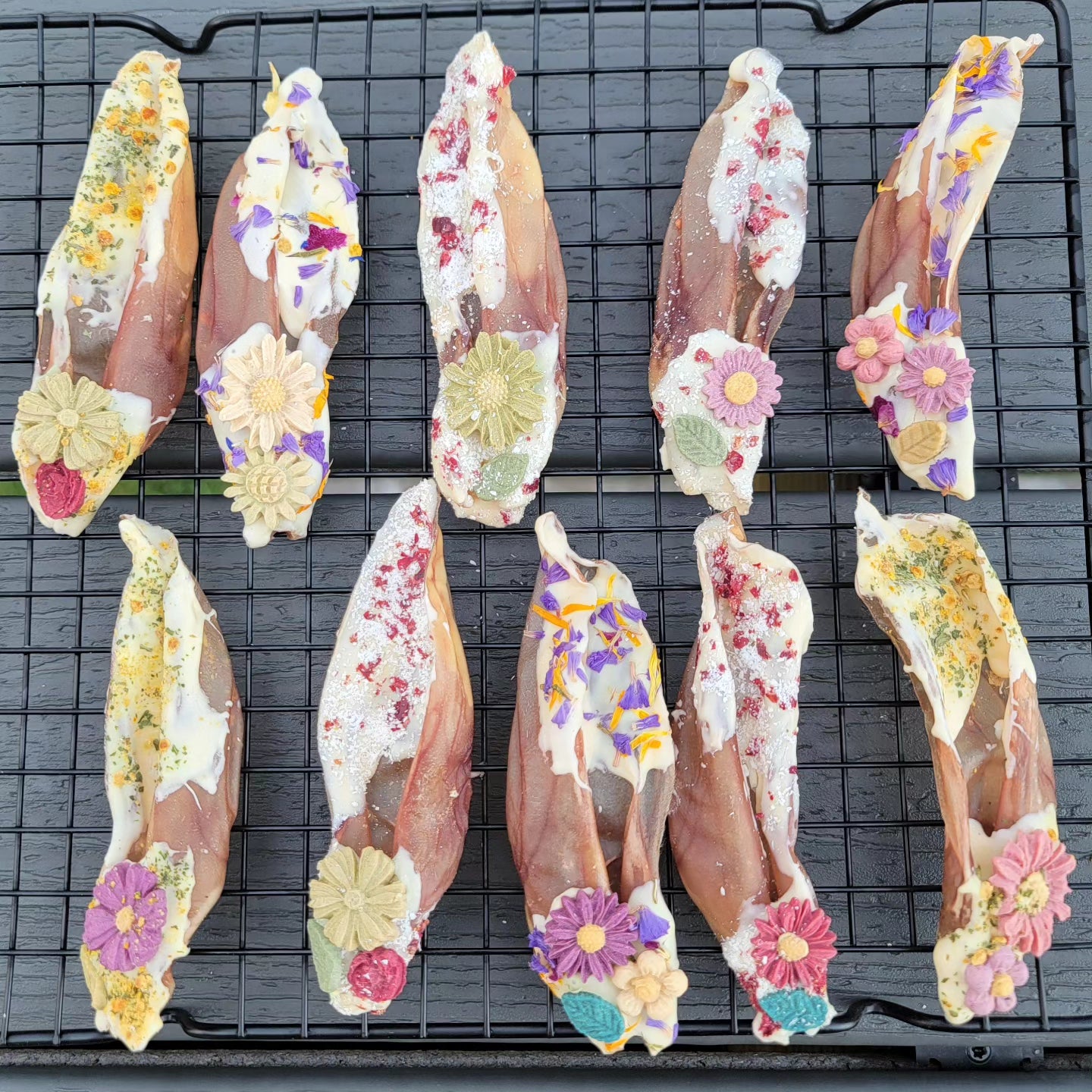 Artisan Floral Herbal Rabbit Ears Chew & Enrichment | Novel Meat Based |Chomper | 4ct | Assorted Designs